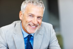 Closeup portrait of a handsome mature business man smiling – Copyspace